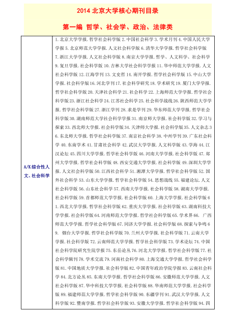 《中文核心期刊要目总览》(北大2014年版)
