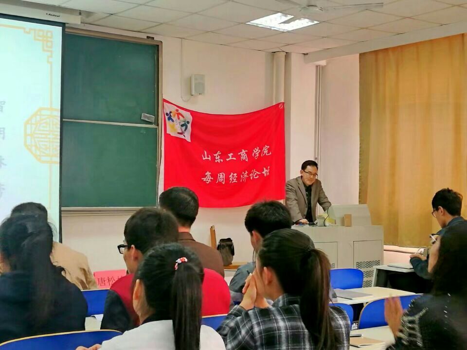 4月25日下午我院每周经济论坛之博士论坛第一讲在5413开讲。学院党总支书记马金智、副院长王发明、副院长唐松林、党总支副书记周蕾、主讲教师张广威博士以及100余名同学参加了此次论坛。