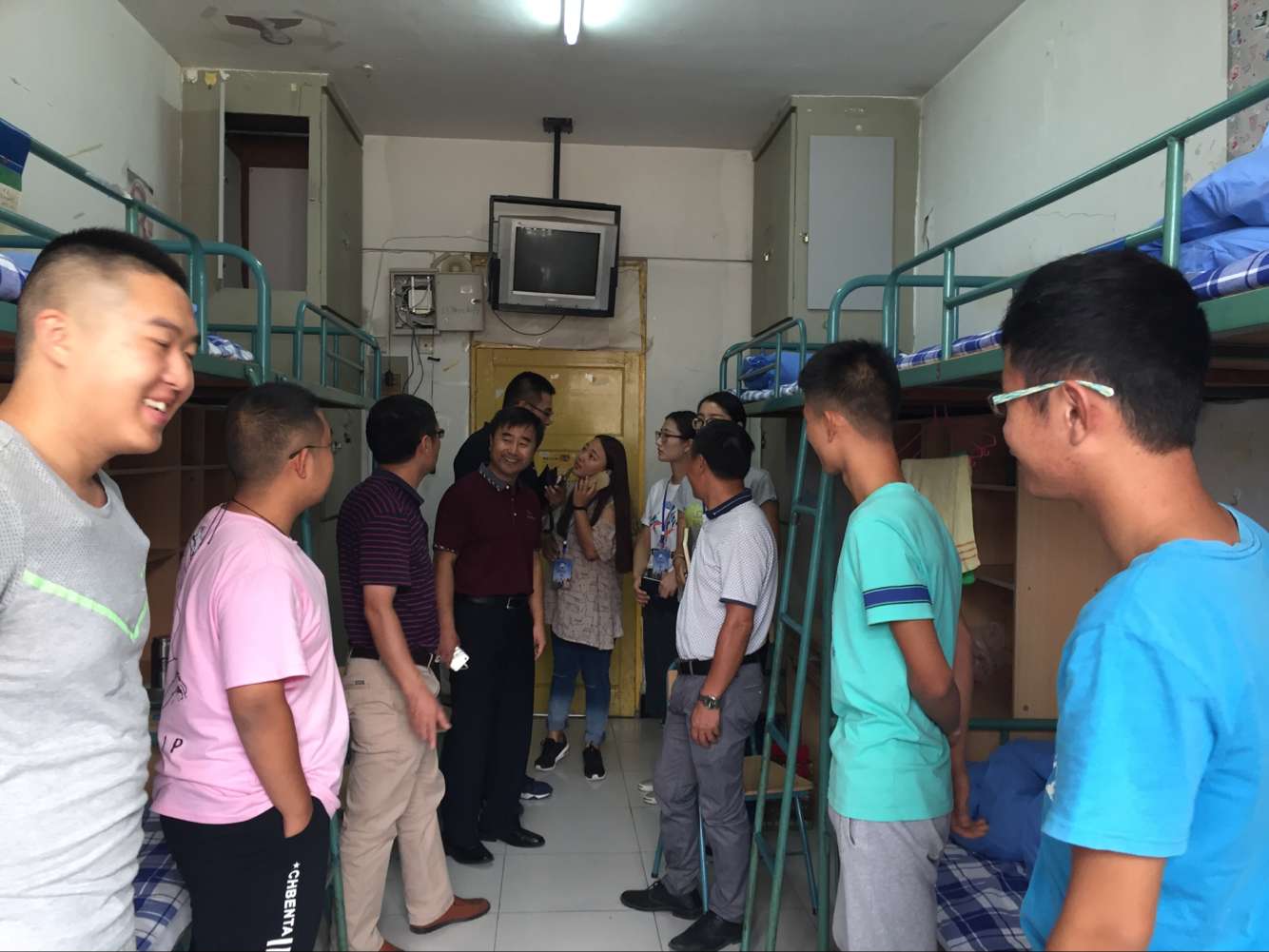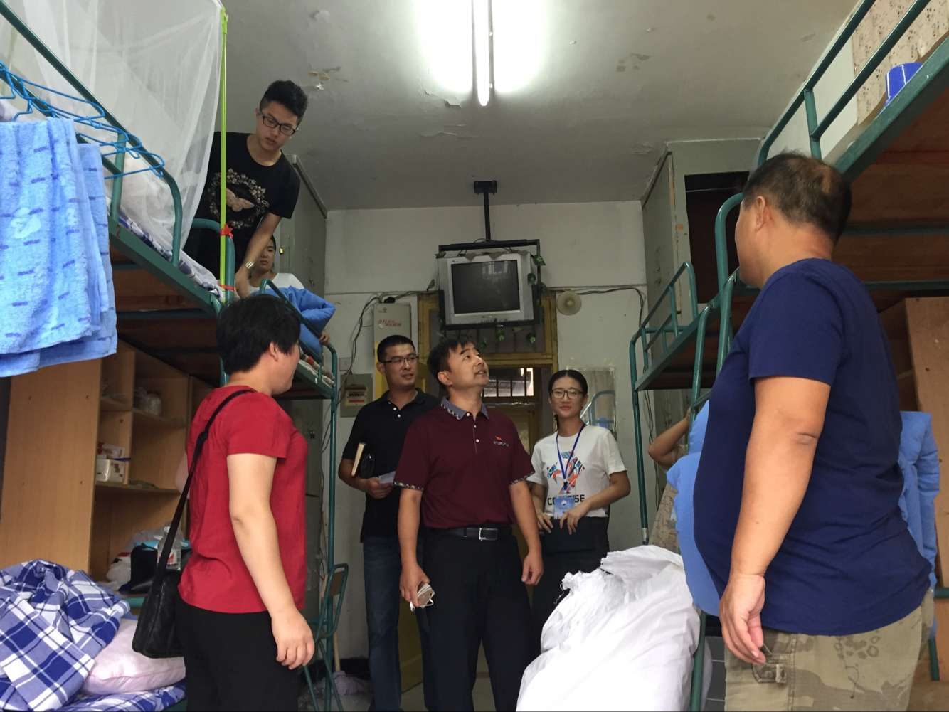 2016年9月2日上午,随着新生的报道,陆陆续续有新生入住宿舍,BBV在线开户党总支书记马金智老师来到新生宿舍走访,与部分新生及其家长交流沟通,询问宿舍安全等问题。团总支书记于向科老师及部分新生助导陪同。