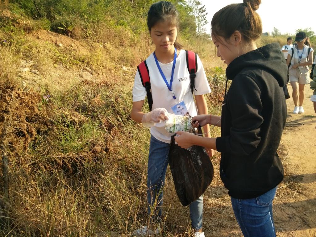 ,BBV在线开户青年志愿者协会及实践部来到凤凰山进行捡垃圾爱心活动,青志部长赖柔文,实践部部长刘茹带领各自部门干事前往。