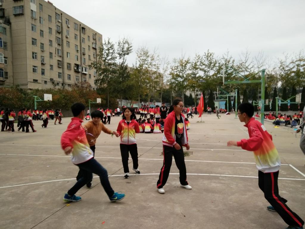 运动会中同学们激情四射,活力无限,本次运动会中有“我来说你来做”、同学们以此来展现自己的才华,还有“能站多少人”、此活动让同学们加强了团结一致的精神,另有“抓单脚蛙”、最受欢迎的还是“撕名牌”游戏,还有“三人四足”等。在游戏过程中于向科老师和同学们一起玩起了游戏,充分体现了师生之间浓厚的友情。