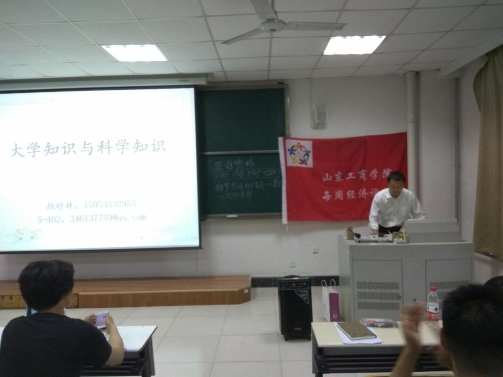 本次讲座的主题为大学知识与科学知识。大学知识有没有用呢?战老师开讲就给我们提出了这个问题,并首先对这个问题展开了讨论。战老师提出大学知识有些是没用的,而其中的科学知识是很有用的。科学知识中的实践、交流语言、人生体验对于工作技巧是很有帮助的。战老师用幽默的语言和一些有趣的例子来为我们阐释了科学知识的重要性,并对同学们的提问耐心的进行了讲解且给出了满意的回答。在同学们的阵阵掌声战老师的演讲圆满结束。