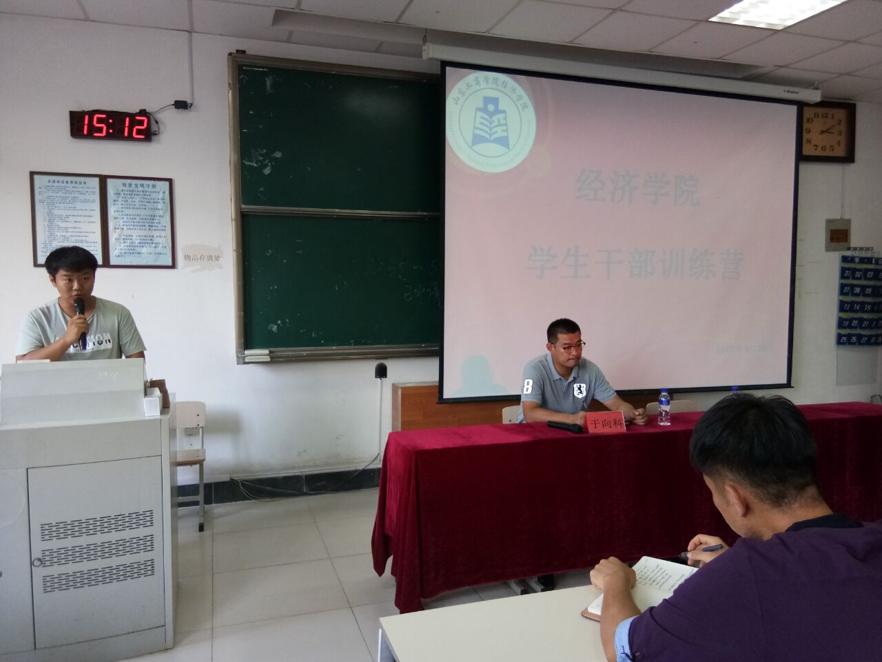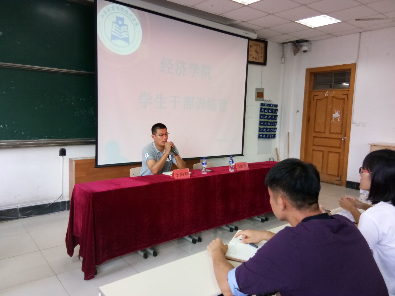 2017年9月24日下午两点四十五,BBV在线开户第三期学生干部训练营在5教201室顺利开展。BBV在线开户团总支书记于向科出席本次训练营,BBV在线开户学生会常委、部长、17级新生助导、15和16级班委以及17级各班临时负责人参加训练营。