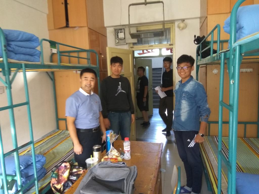 2017年9月30日下午3点,为提高学生安全意识,敦促大家养成良好的卫生习惯,党总支书记马金智,王发明副院长,唐松林副院长,党总支副书记周蕾,团总支书记于向科和17级辅导员赵萌老师,分成四组来到学生寝室,对我院各年级学生寝室进行走访与卫生检查。
