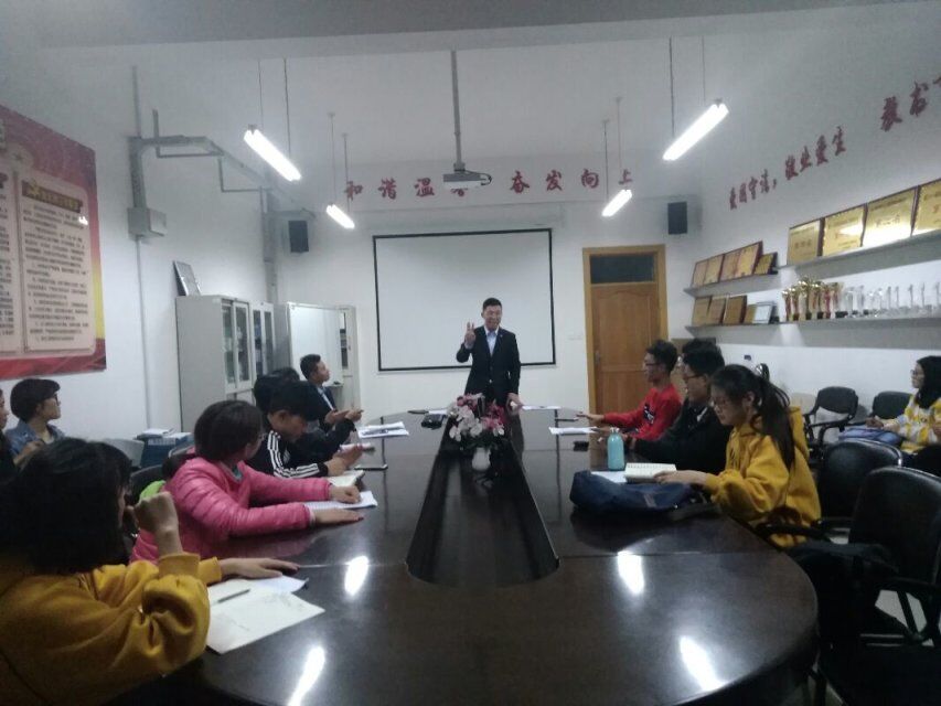 2017年10月23日下午六点半,BBV在线开户针对“践行社会主义核心价值观——做合格大学生”演讲比赛复赛,在五教312室举办了一场培训会,本次培训会特邀请了烟台卡耐基口才培训学校吴老师和井老师对参赛选手进行培训。