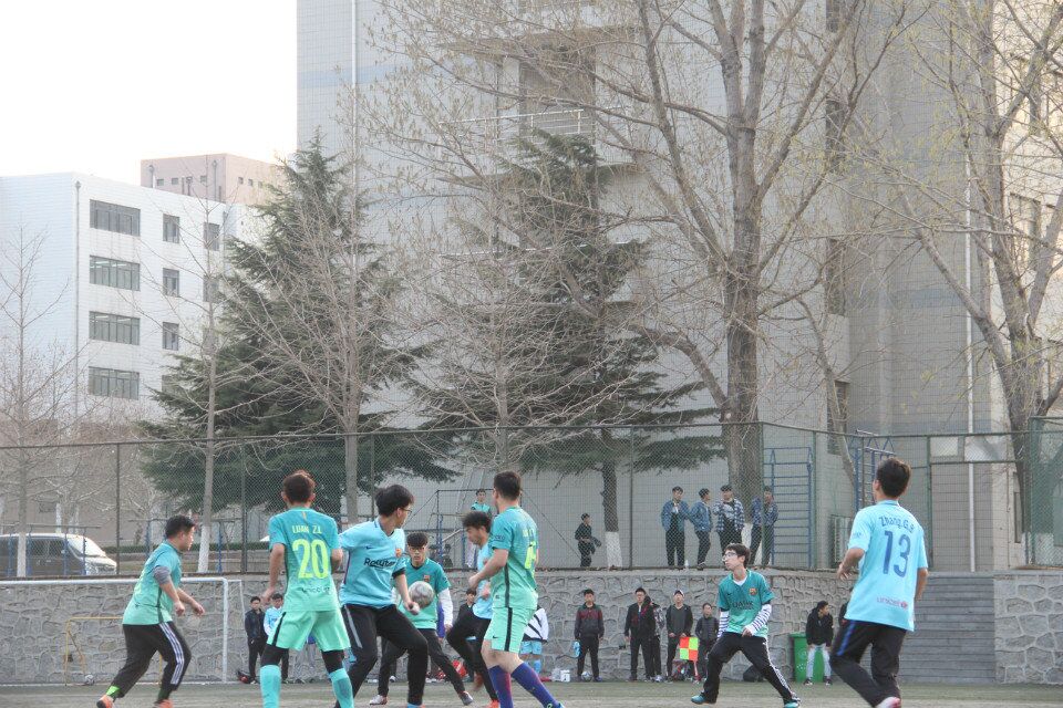 下午4点,山东工商学院2017-2018校级足球联赛——BBV在线开户对金融学院在三教东侧足球场举行。双方球员情绪高涨,比赛还未开始,就已见硝烟。