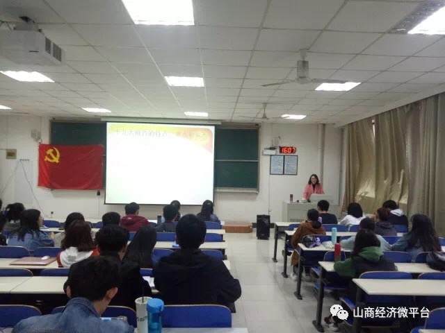 首先,周蕾老师从十九大报告逻辑结构、特点、重点和亮点以及重大意义几个方面向入党积极分子解读了报告内容,强调了从严治党的重要性。