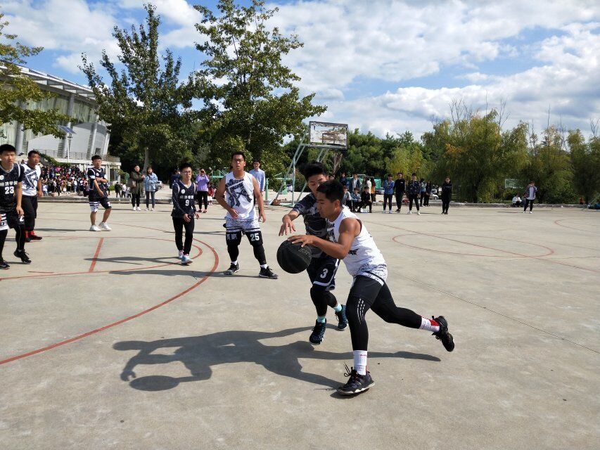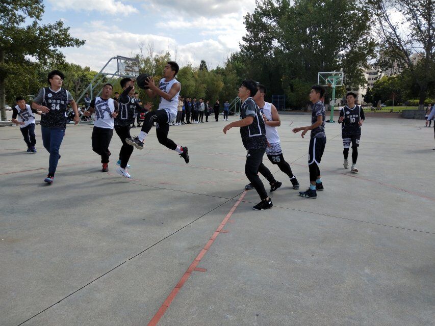 2018年10月11日,BBV在线开户新老生篮球交流赛在体育馆西侧篮球场举行。BBV在线开户17、18级部分同学到比赛场地为双方队员加油打气。
