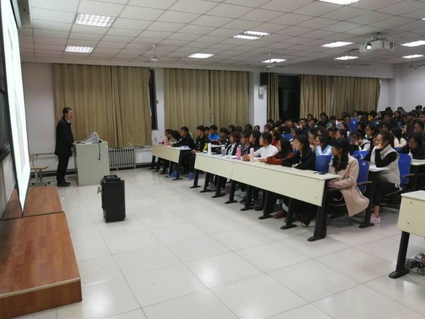 以认真负责的态度和风趣幽默的谈吐赢得了同学们的阵阵掌声,现场气氛融洽。