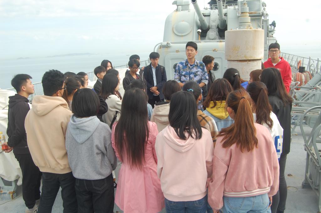 在海军航空学院讲解员的引领下同学们近距离参观了这艘“英雄舰”,在讲解员的讲解下同学们更深入地了解了我国海军和我国海洋事业不断发展壮大的光辉历程。