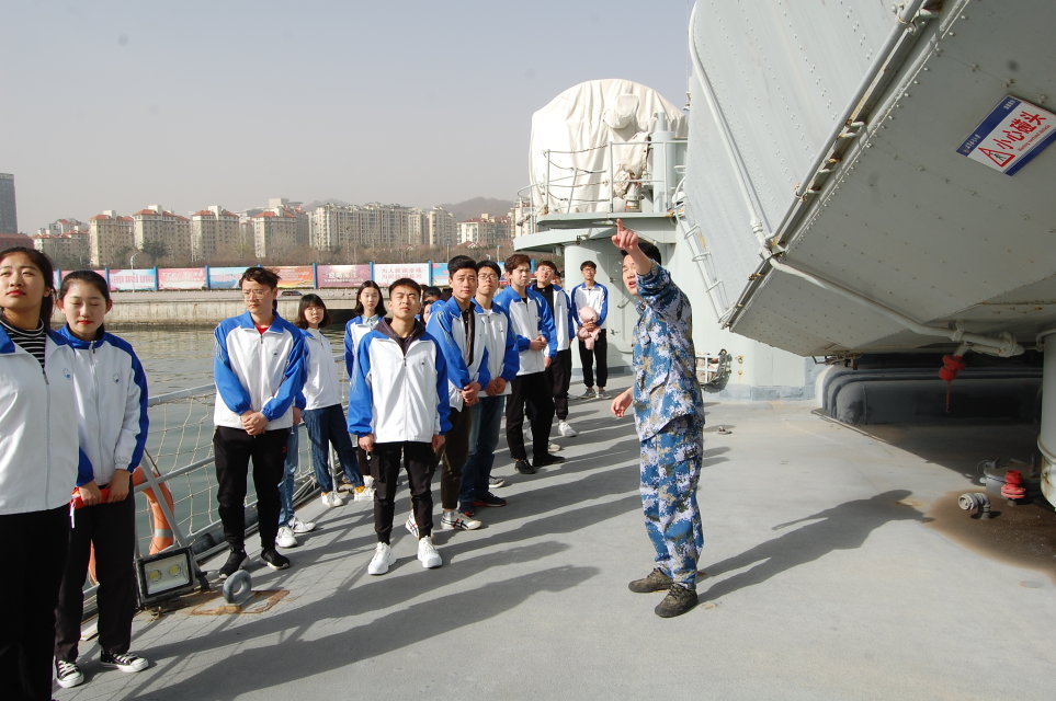 活动开始前,张志豪提醒同学们要文明参观,珍惜宝贵的机会。随后,在海军航空学院讲解员的带领下同学们近距离参观舰艇,在讲解员的讲解下同学们更加深入地了解了我国海军和海洋事业不断发展壮大的光辉历程。