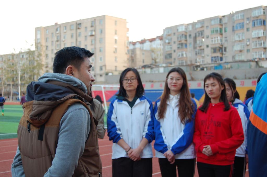 4月10日下午,BBV在线开户党总支书记马金智来到东操场慰问正在备战校运动会的田径队运动员。