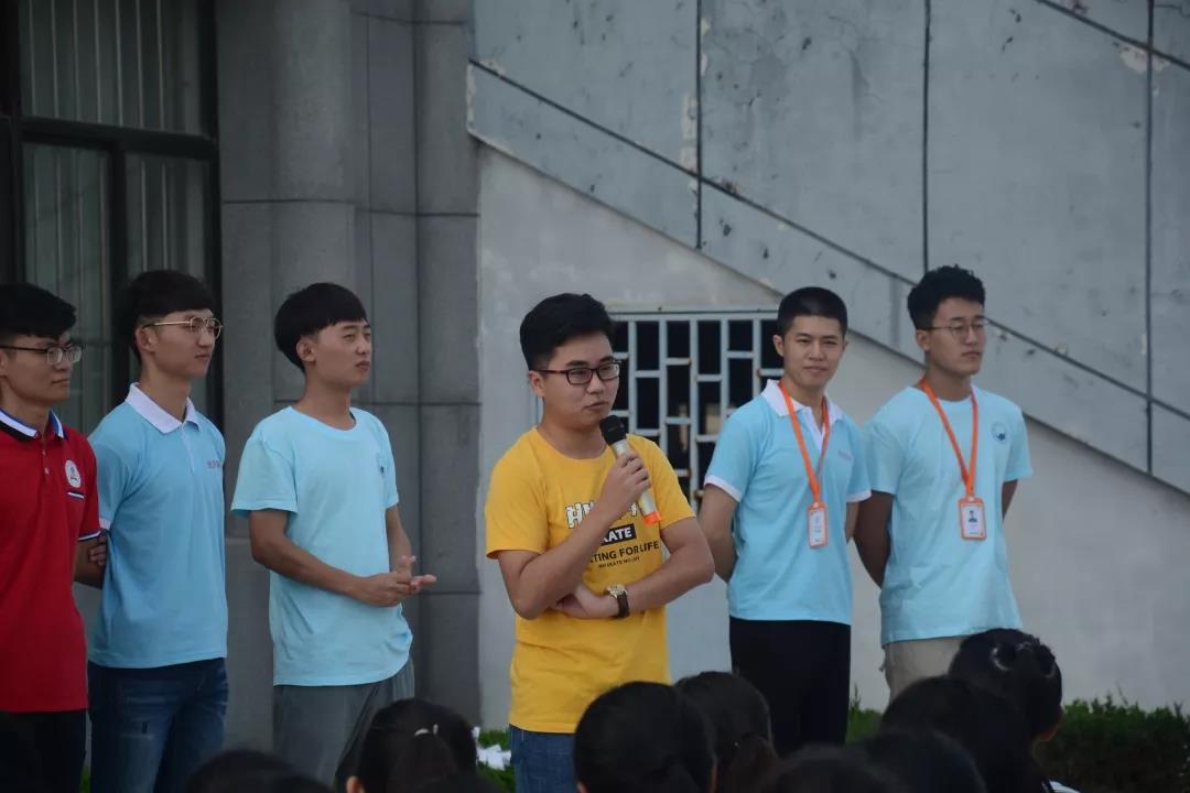 学生会主要成员分别进行了自我介绍与部门介绍,师哥师姐们也对小萌新在未来的生活、学习等方面提出建议,也希望小萌新能够顺利经过军训的考验!