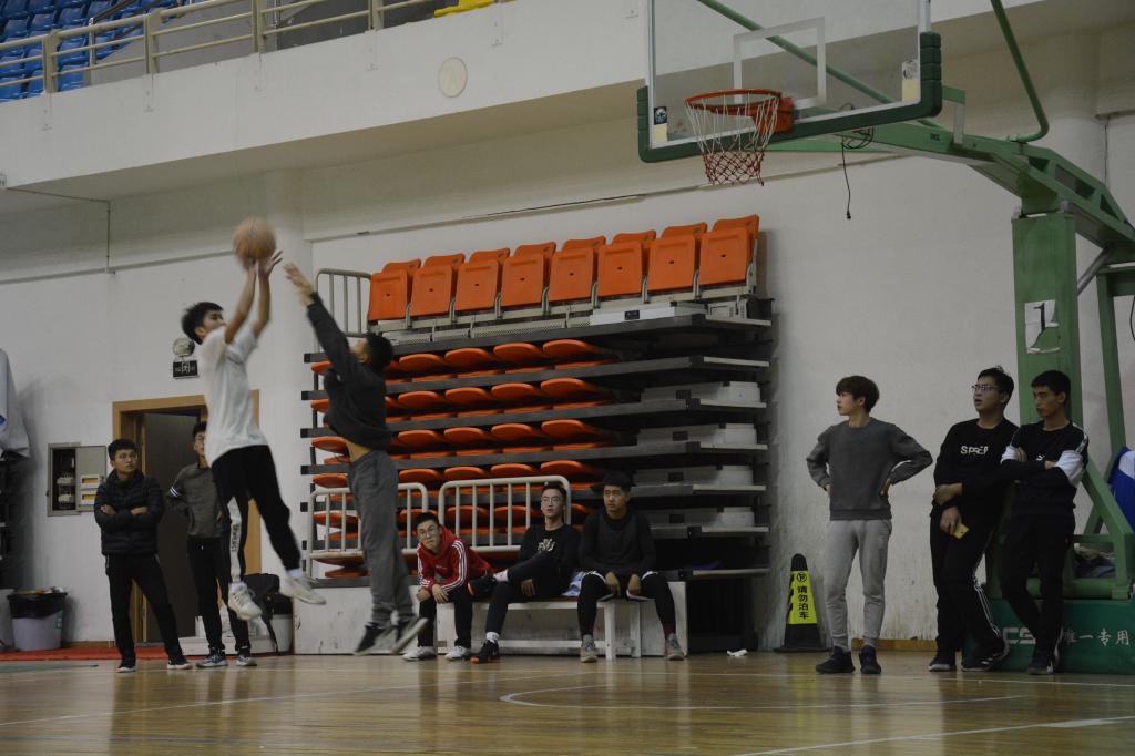 中午,预赛拉开了帷幕,比赛开始前,球员们斗志昂扬、摩拳擦掌,认真地进行着准备活动。随着哨声响起,比赛正式开始,球员们默契配合,精准投篮,比分不断上升,赢得场外同学们的阵阵喝彩。队员们在赛场上尽情挥洒汗水,奋力奔跑。比赛慢慢进入了白热化阶段,汗水早已浸湿了球员们的衣襟。最终,老师队伍获得了胜利,大一以39:49惜败大二,大一以18:26惜败大三。