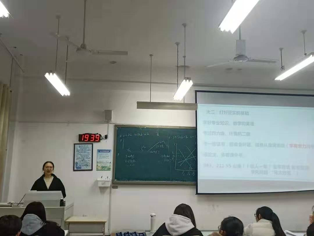 宣讲会首先由国家奖学金获得者彭子姝、陈纪琦以及省级奖学金获得者程秀娟为19级新生分享她们获得奖学金的心得体会,师姐们主要针对工作、学习以及生活三方面给出了自己的建议,督促同学们要努力学习,平衡好三者之间的关系,争做新时代所需要的全面发展人才。最后,师姐们对新生们所提出的关于学习以及生活的各种问题提出了自己的解决办法,起到了良好的榜样学习作用。