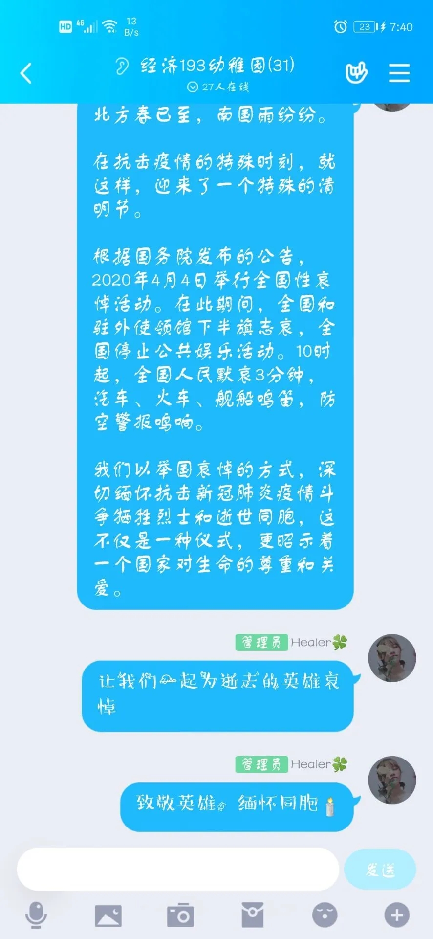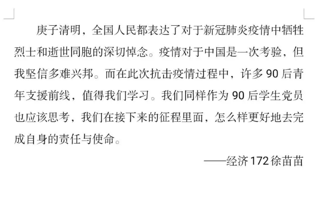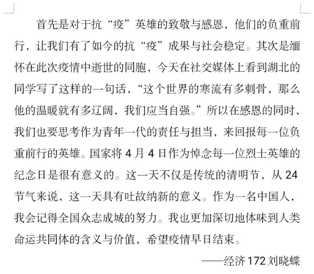 再漫长的黑夜替代不了黎明的曙光,再严重的疫情压垮不了中华的儿女。在此次活动中,同学们对勇往直前的革命先烈表达了无尽的哀思。此次活动更加激发了同学们的爱国之情,激励同学们做理想有担当的时代青年,不忘初心、牢记使命,为中华民族伟大复兴而努力。缅怀先烈,立德立志,向英雄致敬!