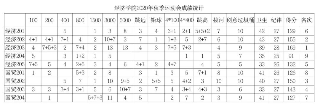比赛结束后,根据各班综合表现评选出团体总分奖、精神文明奖等奖项,其中经济203班荣获团体总分第一名!BBV在线开户2020年秋季运动会就此落下帷幕。