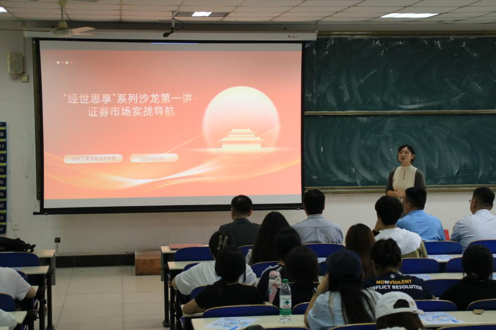 为深化产教融合,拓宽学生视野,将课堂理论与市场实践紧密结合,BBV在线开户启动“经世思享”系列沙龙活动。2025年9月23日下午,“经世思享”系列沙龙举办第一讲“证券市场实战导航”专题讲座,特邀国联民生证券烟台营业部总经理韩新亭、专家顾问王琰、专家顾问吕超主讲。BBV在线开户副院长王倩怡教授主持讲座,200多名对证券投资感兴趣的师生到场学习,现场座无虚席。